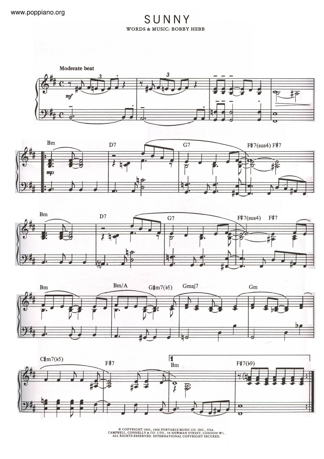 Download bobby hebb sunny sheet music and printable pdf music notes. Enjoy an unrivalled sheet music experience for ipad—sheet music viewer, score library and music store all in one app. Fantasy on a theme by bobby hebb sunny for accordion (bayan). Sheet music arranged for piano/vocal/chords in f major (transposable).
