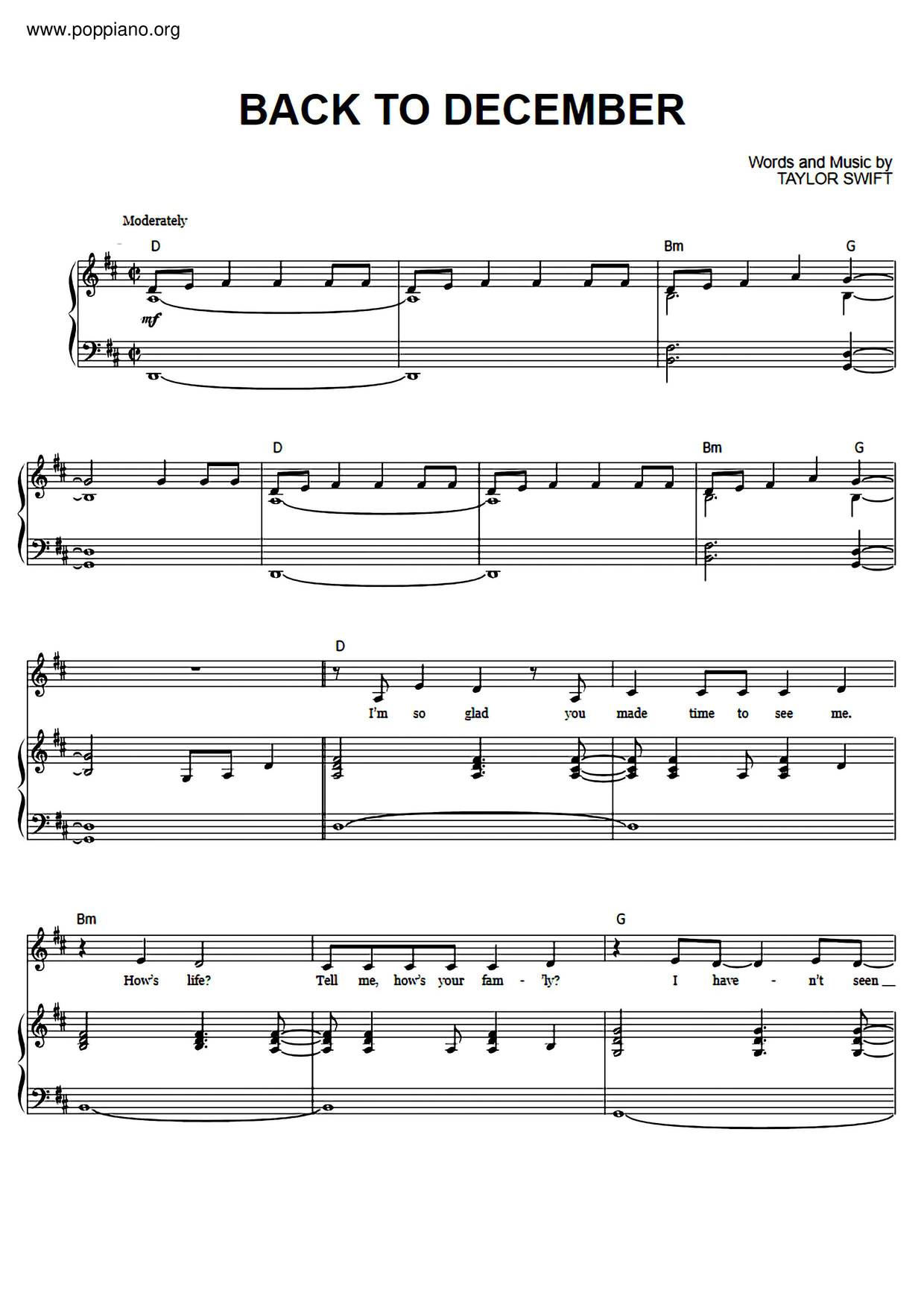 Print and download back to december sheet music by taylor swift. A em standing in front of you saying i'm sorry for that night, g a and i go back to december all the time. Taylor apologizes in this song about the way she messed up a relationship with a former boyfriend, who now finds it hard to trust her. There is no official free printable sheet music but go on to www.sheetmusicplus.com for yugioh sheet music for piano there are 12 songs hope this helps.