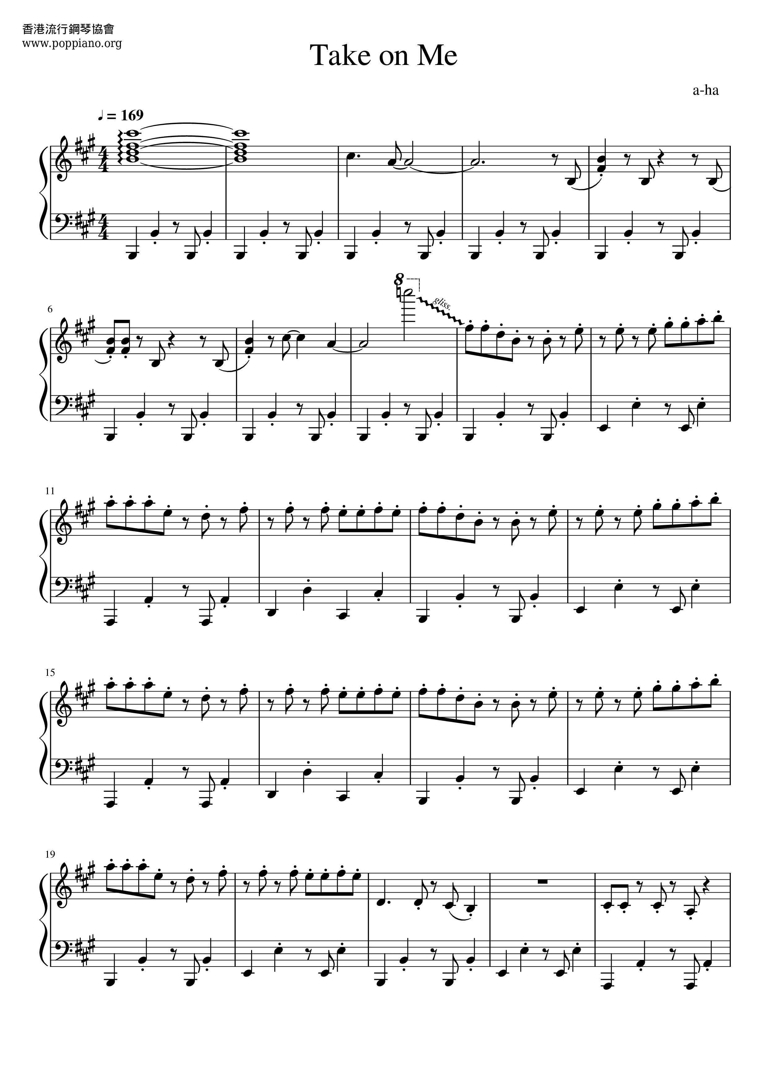 Free take on me piano sheet music is provided for you. Please fill this form, we will try to respond as soon as possible. Related sheet music you may also like. Bellow is only partial preview of take on me sheet music, we give you 1 pages music notes preview in order to continue download or access full sheet music of take on me you need to signup.