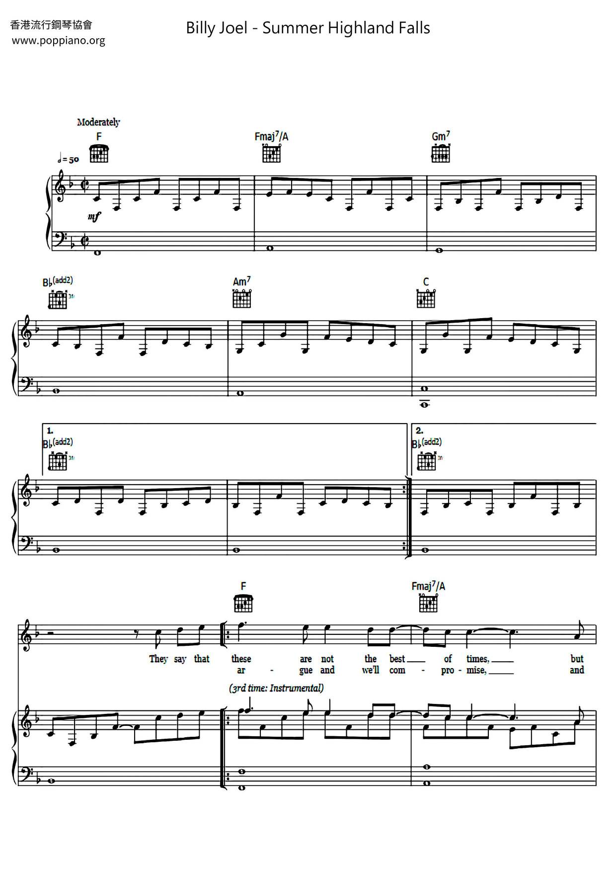 Get Summer Highland Falls Piano Sheet Music Pdf Pics. Download and print summer, highland falls sheet music for piano et chant by billy joel from sheet music direct. Download and print in pdf or midi free sheet music for summer, highland falls by billy joel arranged by bluemel for piano (solo).